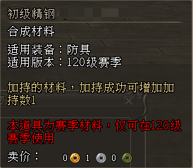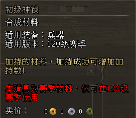 比如,玩家在150级赛季中,只能使用对应的150级赛季的神铁、精钢进行加持,无法使用120级赛季中积累的120级赛季的神铁、精钢;
