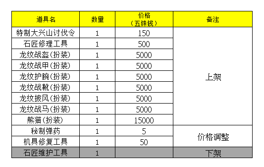 4)五铢钱商城、墨玉奖励官的兑换中,新增可兑换扮装