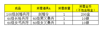 1)正规兵征召官处加入剑姬兵符的兑换,且降低兑换60级长枪兵符、60级女弓兵符的所需金币数