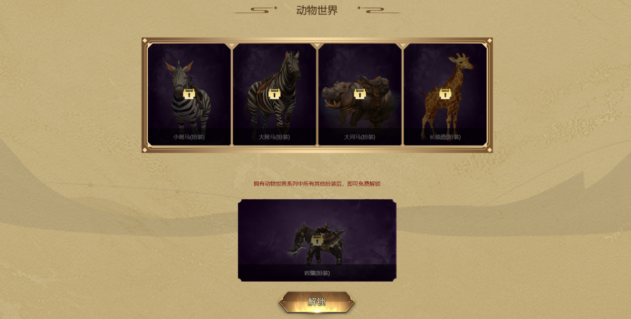 集齐「小斑马」「大斑马」「大河马」「长颈鹿」,即可免费解锁「岩骧」