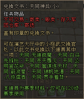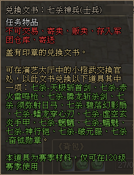 3、演义大厅中,新增NPC「小橙武置换官」,兑换列表如下: