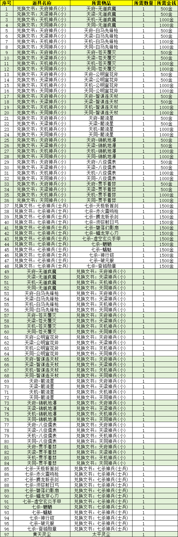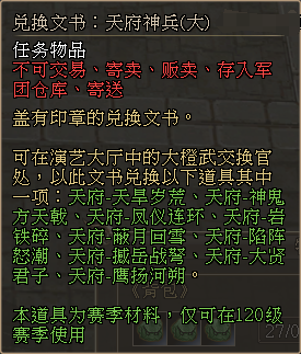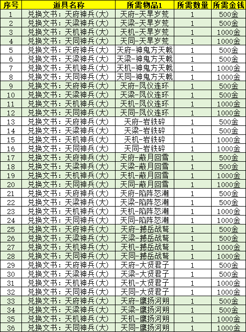 4、演义大厅中,新增NPC「大橙武置换官」,兑换列表如下: