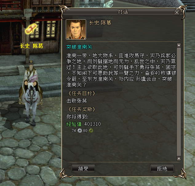 · 主公们可在寿春的「长史 陈葛」处接取《突破淮南关》任务,完成任务后即可前往“淮南”