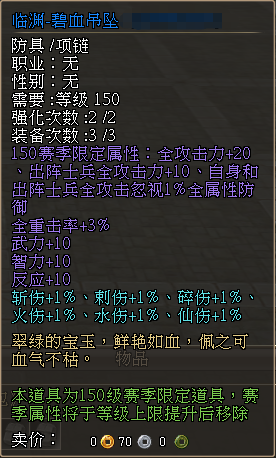 · 凤凰谷世界王、天柱山世界王、白马世界王、淮南世界王、「曲阿之战」副本新增“临渊-碧血吊坠”的产出,以上装备掉落数值为随机值