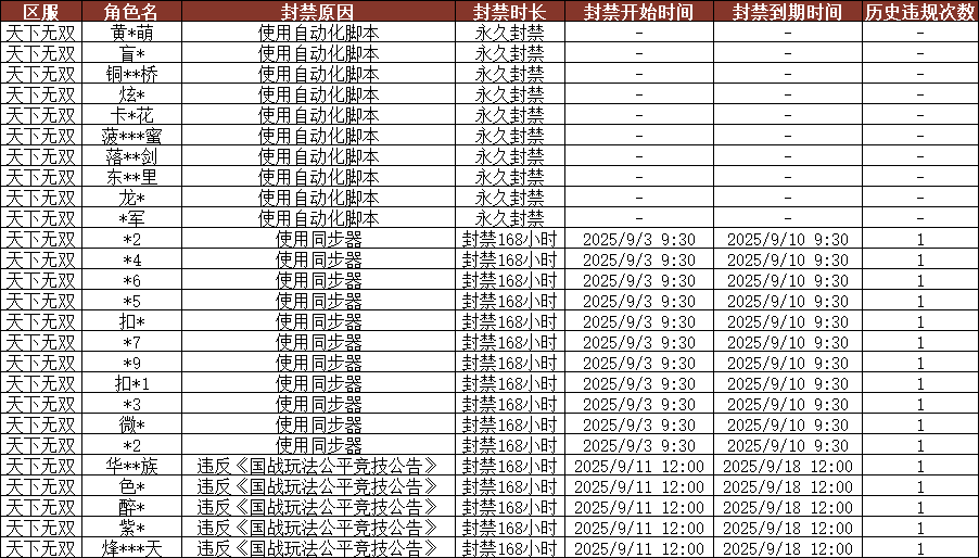 为了更好地维护游戏内的游戏秩序,保障各位主公良好公正的游戏体验,近期我们对游戏中违反了游戏规定与用户协议的账号进行了处理。本次处罚账号共计26个。