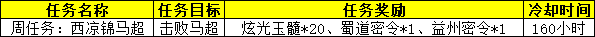 · 玩家可在副本内的NPC「简雍」处,接取以下周常任务(该任务完成后的160小时内都无法再次接取,可在特别状态栏查看到期时间)