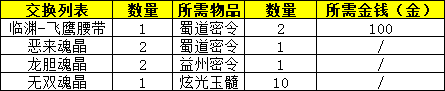 4、演义大厅中,新增NPC「密令商人」,兑换列表如下: