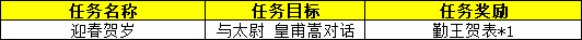 《决战嘉德殿》任务,新增限时物品奖励:勤王贺表*1,本次活动预计持续至2026年3月3日维护前。
