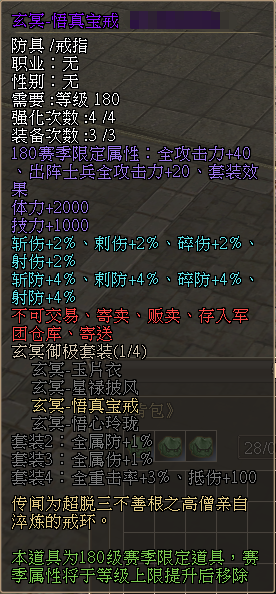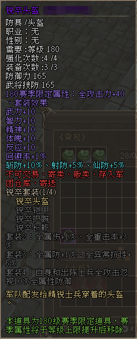 (锐卒套装、临渊-飞鹰腰带为4强装备,其余皆为2强装备)
