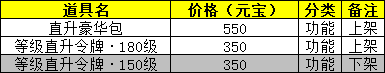 13、元宝商城调整以下条目:
