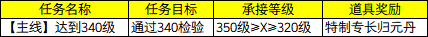 5、演义大厅中的「等级奖励官」处,新增任务《达到340级》
