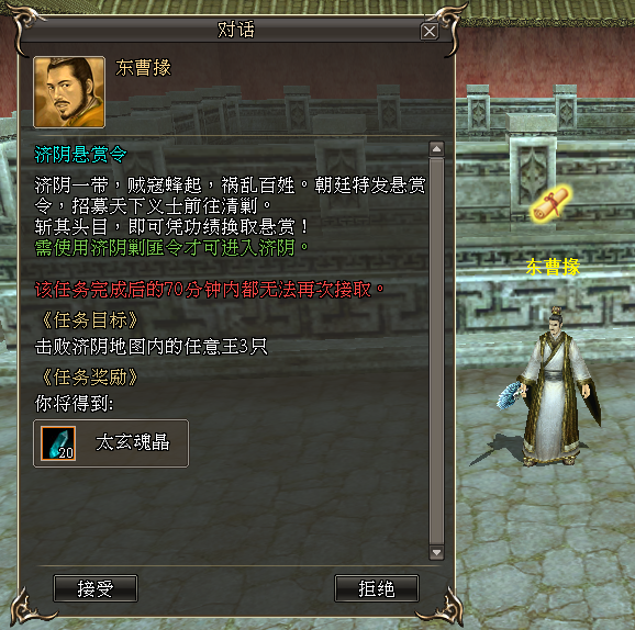1、各城池中的「东曹掾」处,新增以下有冷却时间的任务