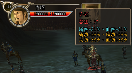 打败严舆后,可以前往左路寻找NPC黄盖,对话后出现第二个Boss【许昭】,许昭为仙妖双属性法术型Boss。每隔一段时间,许昭会施放一个伤害较高的妖属性单体法术技能,许昭还有两个指定范围的法术伤害技能,但是伤害平平。