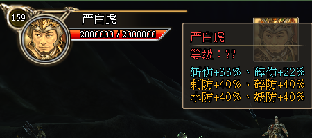 战胜三名Boss后,玩家来到副本最后的高台上,迎战最终Boss【严白虎】,Boss为重兵虎将型设定,有指定范围伤害技能,且技能伤害较高,战斗时还会削减玩家的技力值。严白虎还有一个伤害非常高的单体技能,需要前排抗伤,十分考验前排的承伤能力。