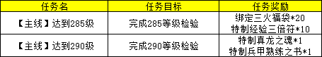 4.演义大厅中的『等级奖励官』处,新增任务《达到285级》《达到290级》