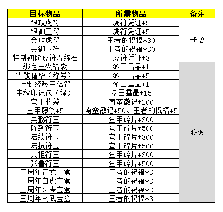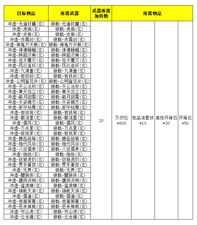 2.2 演义大厅中新增NPC冲虚神器兑换官,兑换清单如下