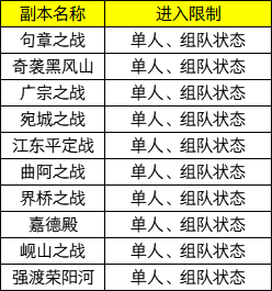 1、部分副本开放单人状态进入