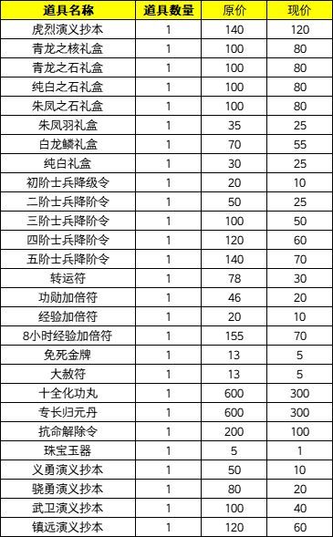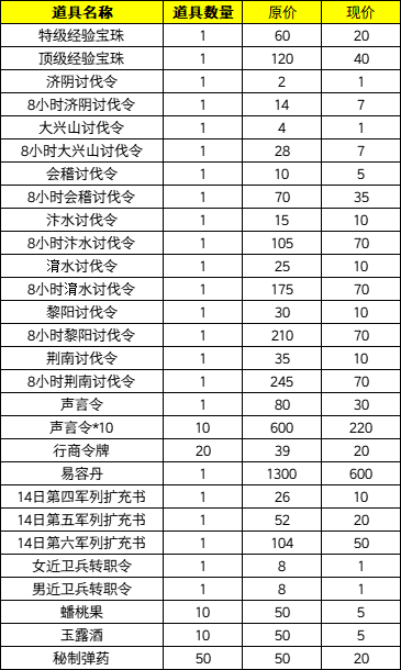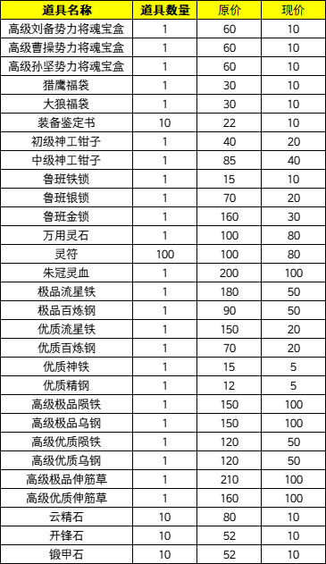5、元宝商城部分物品降价
