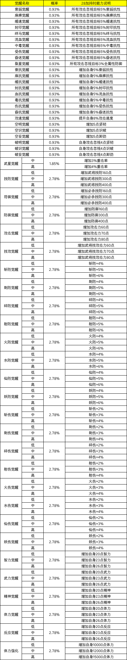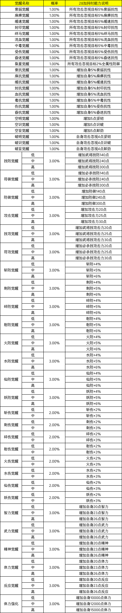 ·以下为通用防具觉醒的能力列表