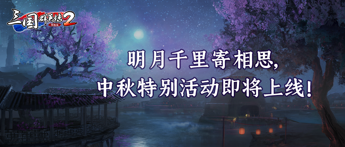 丹桂飘香,鸿雁传书,中秋佳节到眼前。在这个团聚的节日里,《三国群英传2》网络版为您准备了精彩纷呈的活动和节日福利,期待大家在游戏中一起庆贺佳节!即使我们身处各处,也能跨越时空的界限,共享一份团圆!