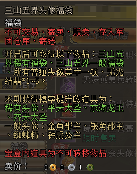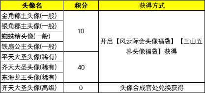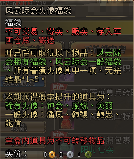 ·三山五界一般头像福袋、风云际会一般头像福袋、三山五界稀有头像福袋、风云际会稀有头像福袋,概率公示如下: