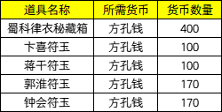 Tips:本期为糜竺商店第九期兑换,第十期糜竺商店将会更换货币,第七至第九期消费货币【方孔钱】将于版本更新后作废,请各位主公尽快兑换