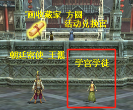 3、演义大厅中 新增NPC「字画收藏家 方圆」