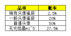 ·横刀立马头像福袋、剑指天下头像福袋,概率公示如下: