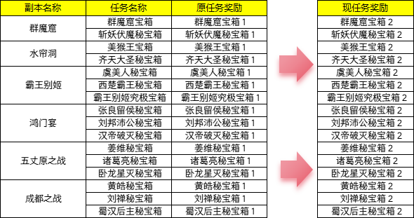 4、部分副本任务奖励修改