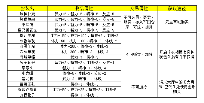 3)第七页扮装衣柜所需扮装的属性、获取途径如下: